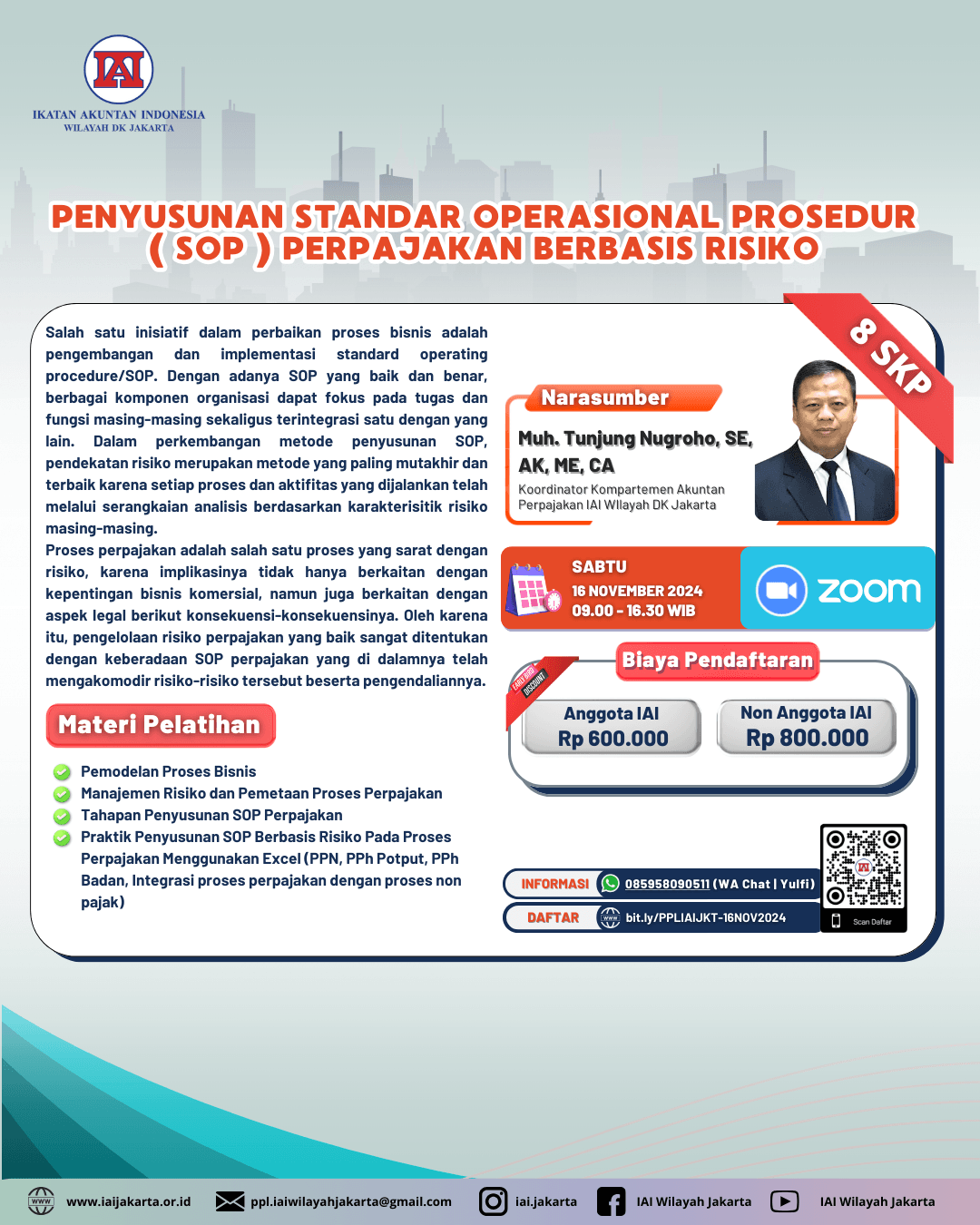 - Praktik Penyusunan SOP Berbasis Resiko Pada Proses Perpajakan Menggunakan Excel (PPN, PPh Potput, PPh Badan, Integrasi proses perpajakan dengan proses non pajak)